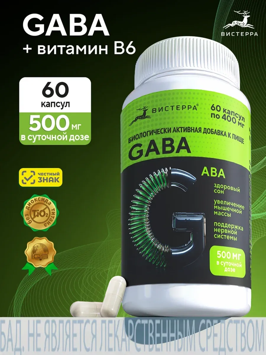 Габа GABA + витамин B6, 60 капсул. Алтайское Холмогорье
