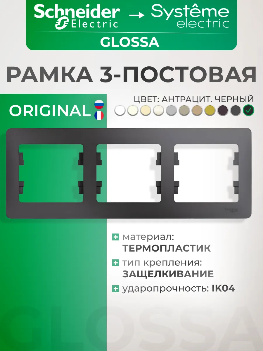 Рамка черная горизонтальная трехместная Glossa. Розетки и выключатели