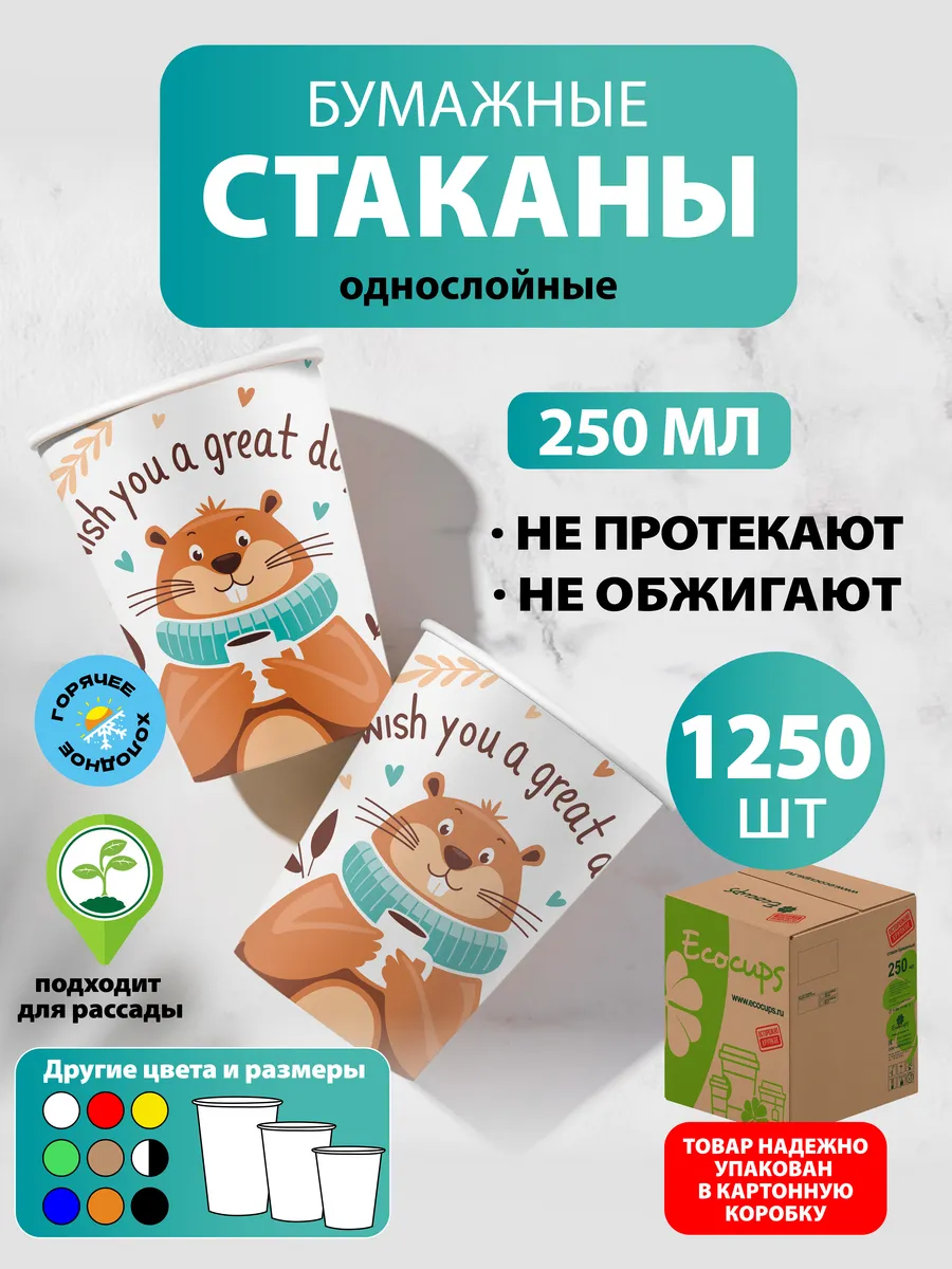 Стаканы одноразовые бумажные 250 мл, 1250 шт Бобёр. DeMarco. DEVELOP WITH US