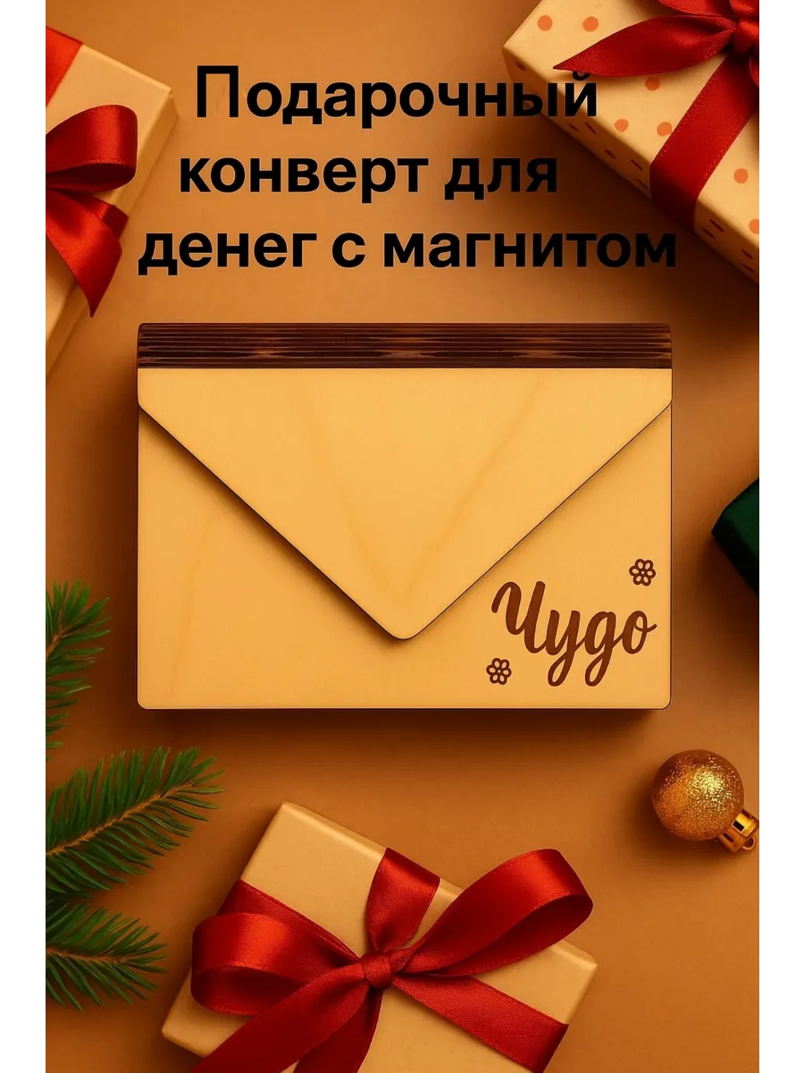 Деревянный конверт для денег «Чудо» с магнитом, подарочный. ИП Мурзина А. Х.