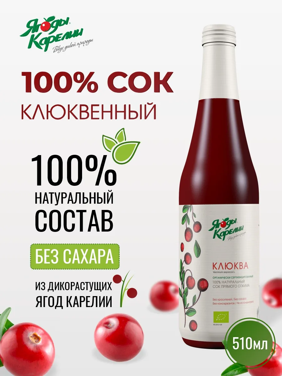 Сок Клюквенный 100%, 510 мл. Ягоды Карелии