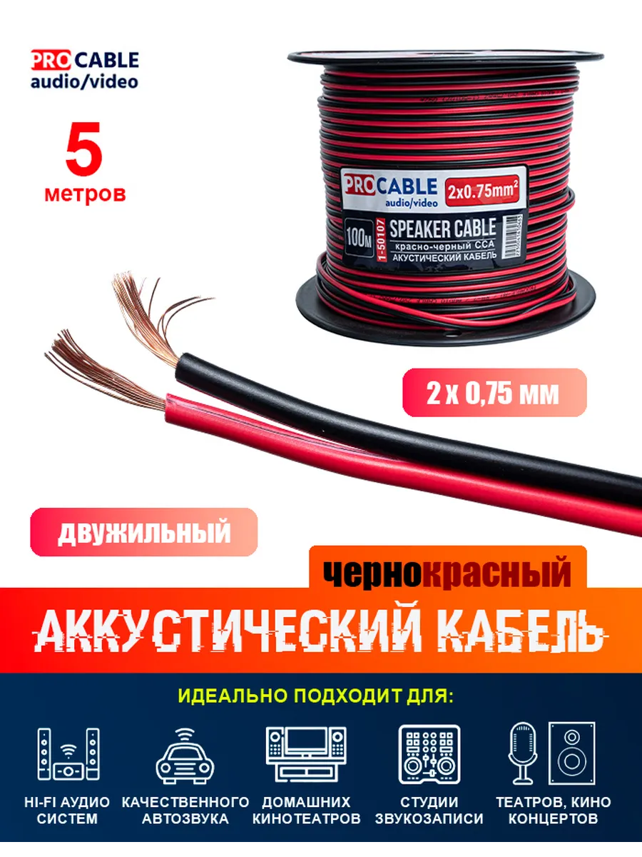 Акустический кабель 2 х 0,75 мм2 черно-красный (5 метров). SK STORE