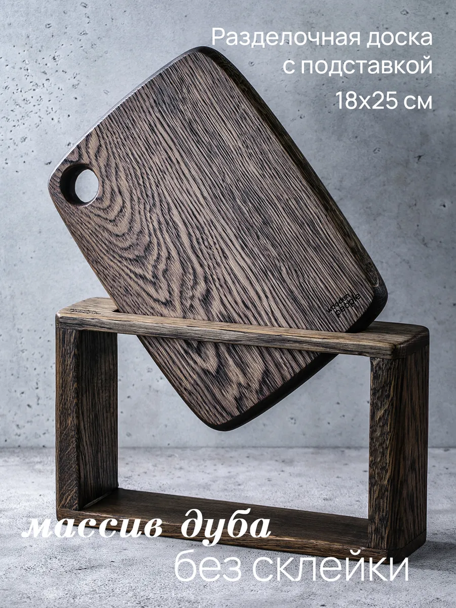 Разделочная доска из массива дуба с подставкой. Wooden People