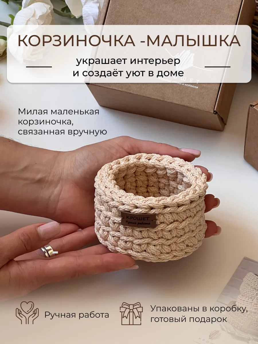 Корзина маленькая для хранения плетеная 1 шт. вязаная. мастерская КРОШЕТ