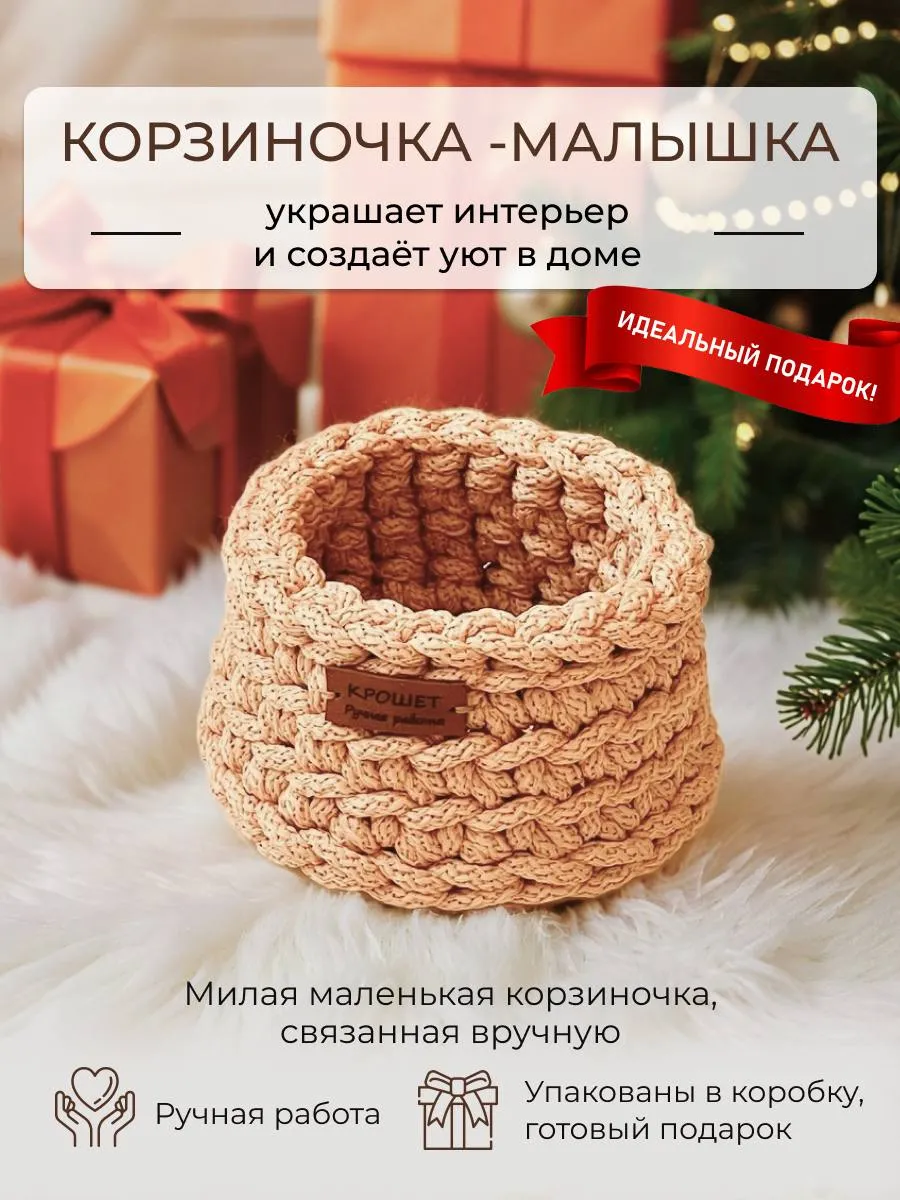Корзина маленькая для хранения плетеная 1 шт. вязаная. мастерская КРОШЕТ
