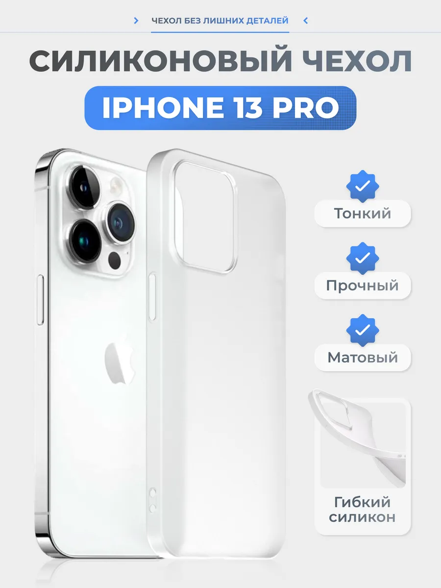 Чехол на iPhone 13 Pro белый, силиконовый, тонкий. superpolka