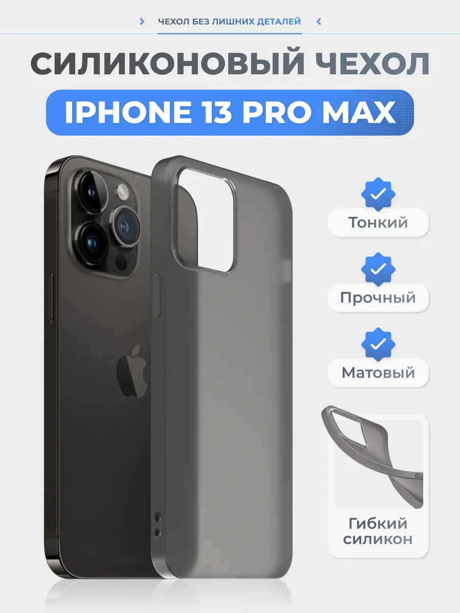 Чехол на iPhone 13 Pro Max черный, силиконовый, тонкий. superpolka