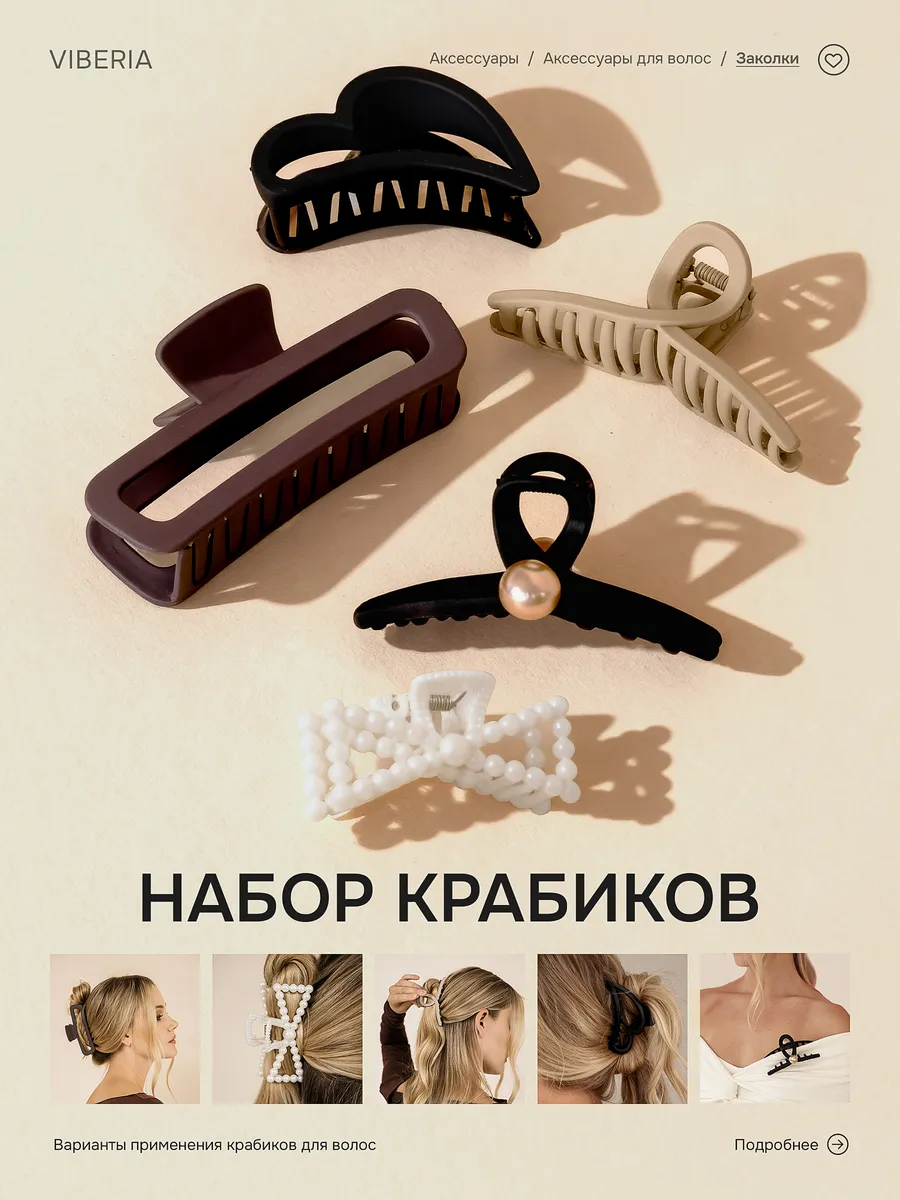 Набор крабиков для волос 5 штук. Ритм Уюта