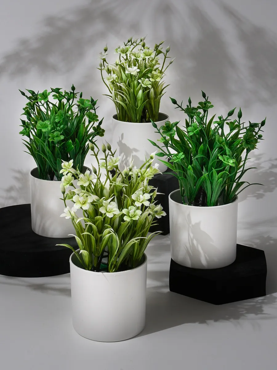 Искусственные цветы для декора комнаты в горшках 4 штуки. KridaGroup