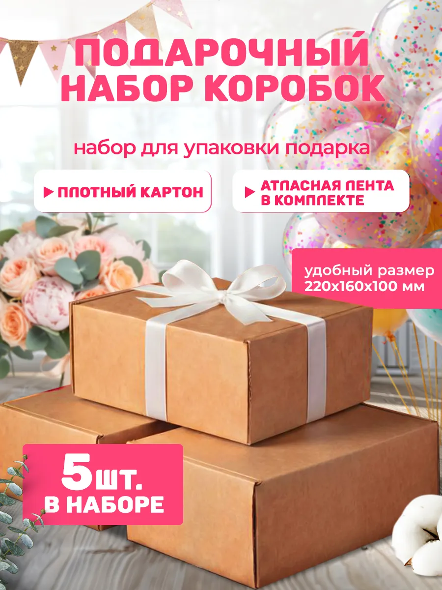 Коробки крафтовые подарочные 22х16х10 см (5 шт). ХЭППИ ХОББИ