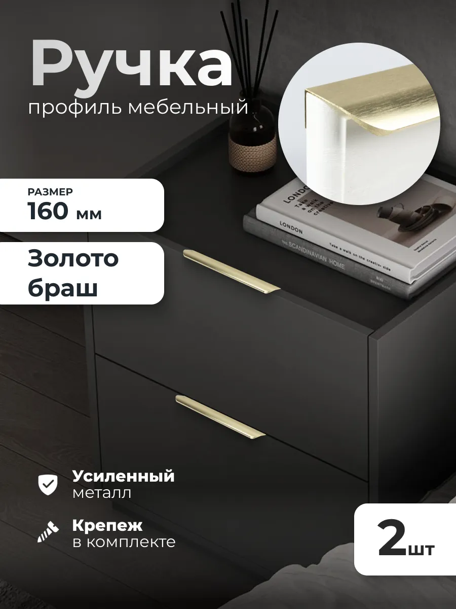 Ручка для мебели 160 мм Браш золото 2 шт. ИП Синельщиков В. А.