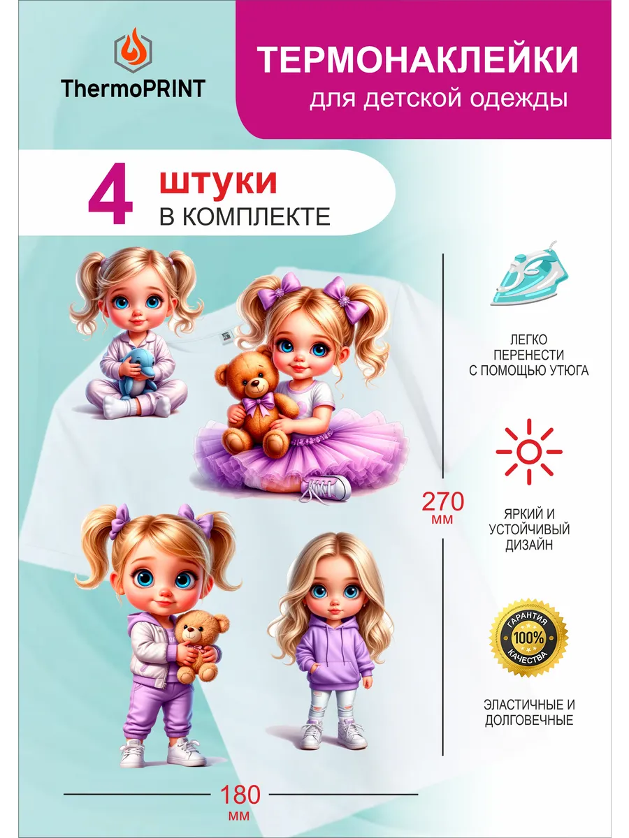 Термонаклейки на детскую одежду Малышка в сиреневом. ПРИНТ