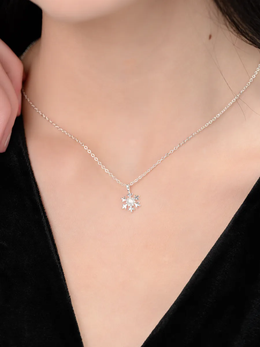 Красивая подвеска из серебристого металла с цепочкой, украшенная мелкой снежинкой. Подходит для романтической вечеринки или ежедневного ношения. Подвеска станет отличным дополнением к любому настроению и добавит света в вашу жизнь.