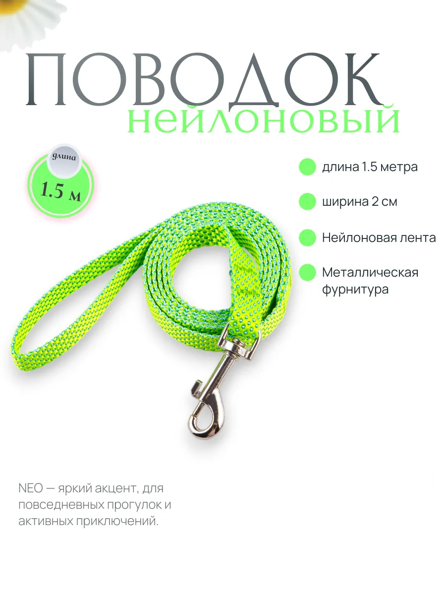 Поводок для собак и кошек NEO 150 см зелёный. Fluffy’s Tail