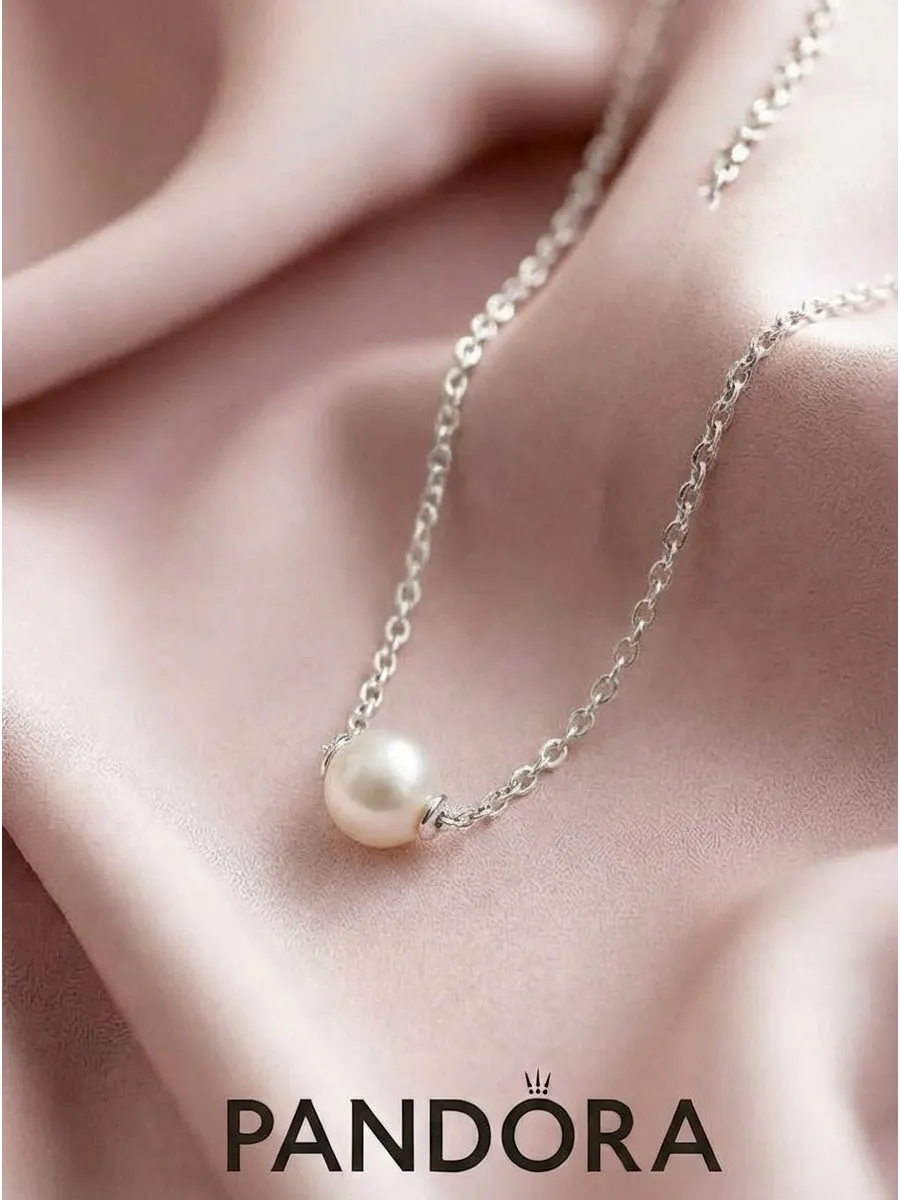 Колье Круглая жемчужина с серебристой цепью. Официальный магазин Pandora Live