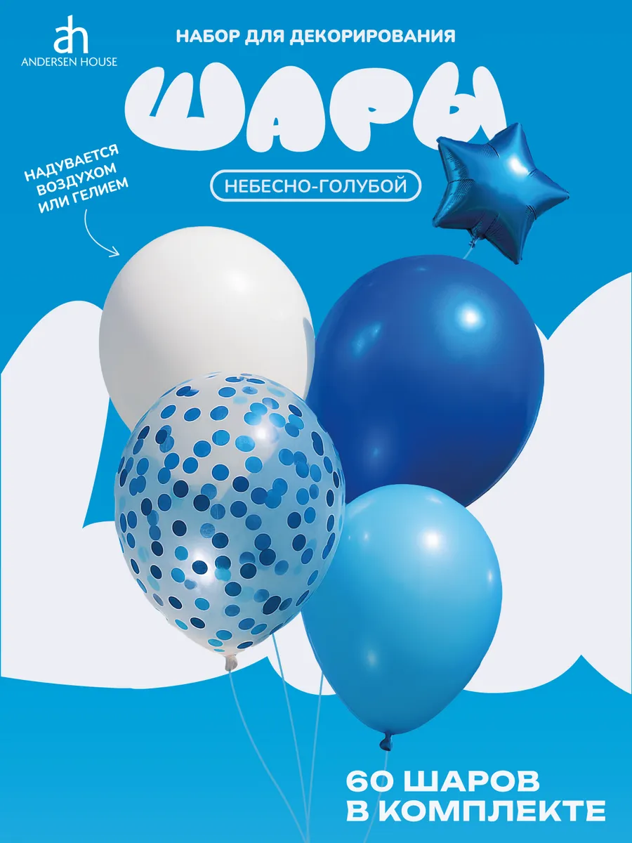 Набор шаров для декорирования голубой, 60 шт, фотозона. ANDERSEN HOUSE