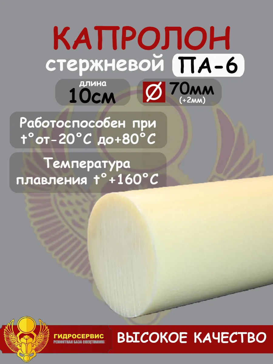 Капролон стержневой D 70мм, L 10см для втулок, подшипников. Б-Гидравлика
