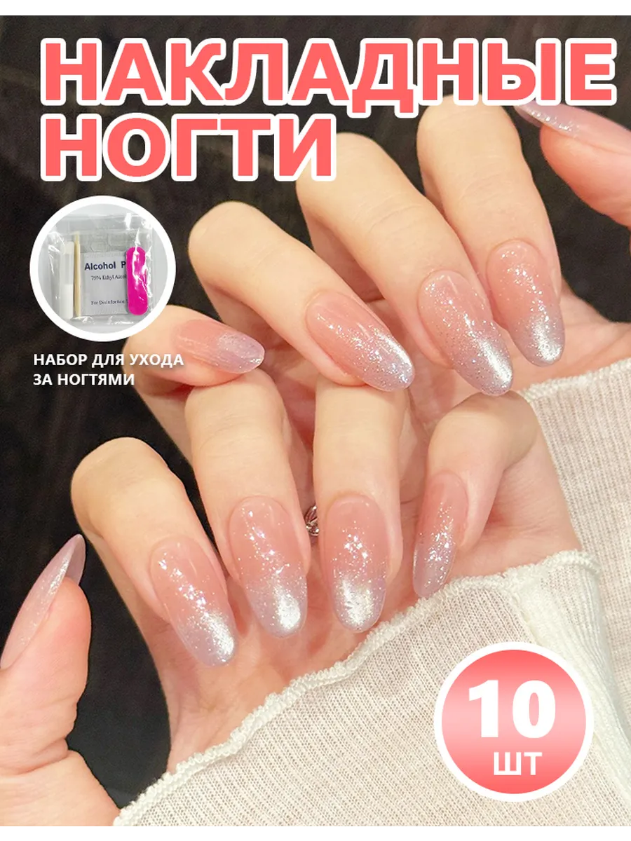 Накладные ногти розовый градиент с дизайном и клеем. Твой Выбор
