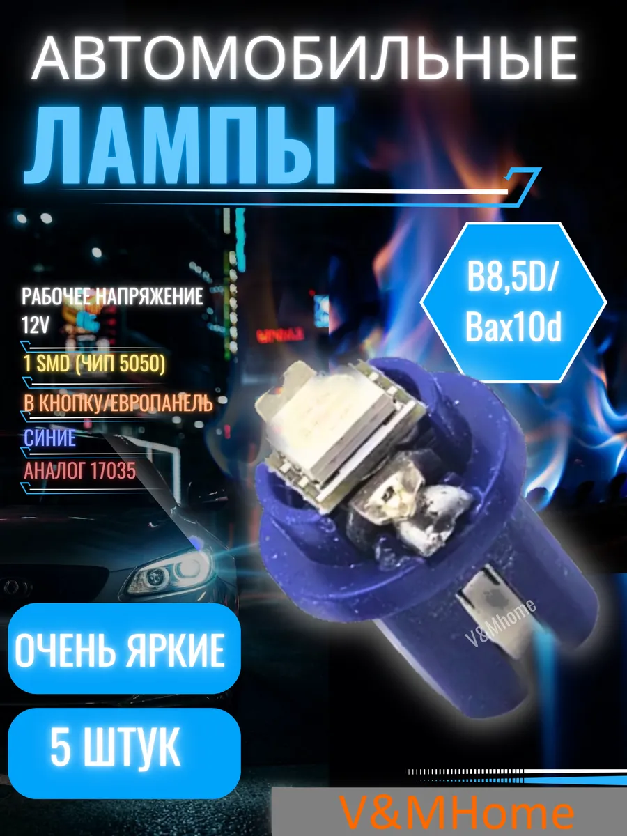 Главная / Датчики автомобильные / Лампы Led автомобильные B8.5d, Bax, T5 синие 5шт. V&MHome