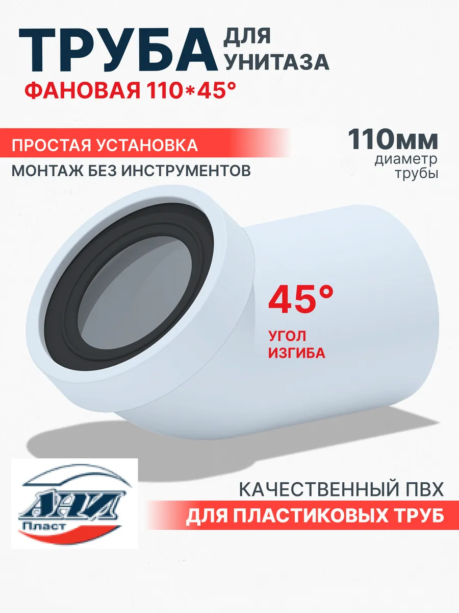 Труба фановая для унитаза 110 мм 45°. Олимп