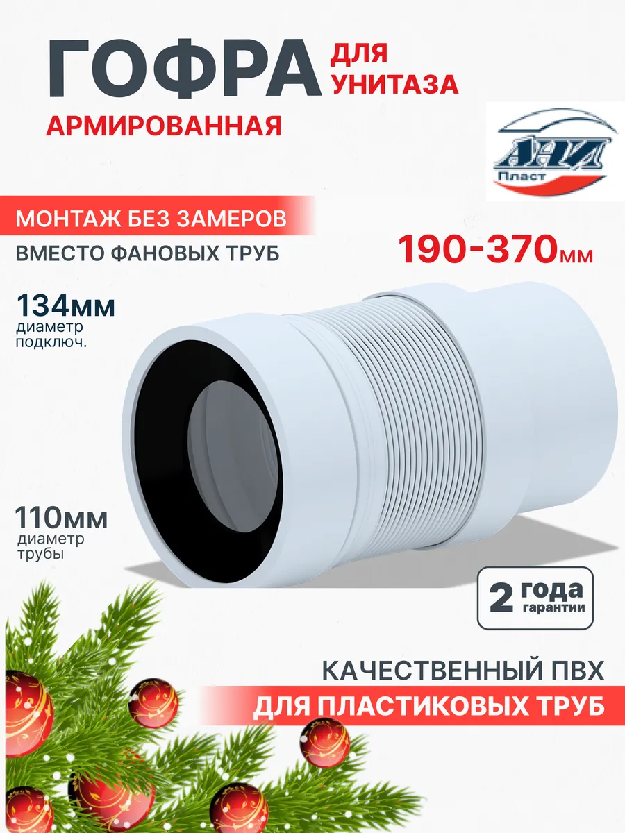 Главная / Канализация / Гофра для унитаза универсальная 110мм х 190-370мм удлинитель. Олимп