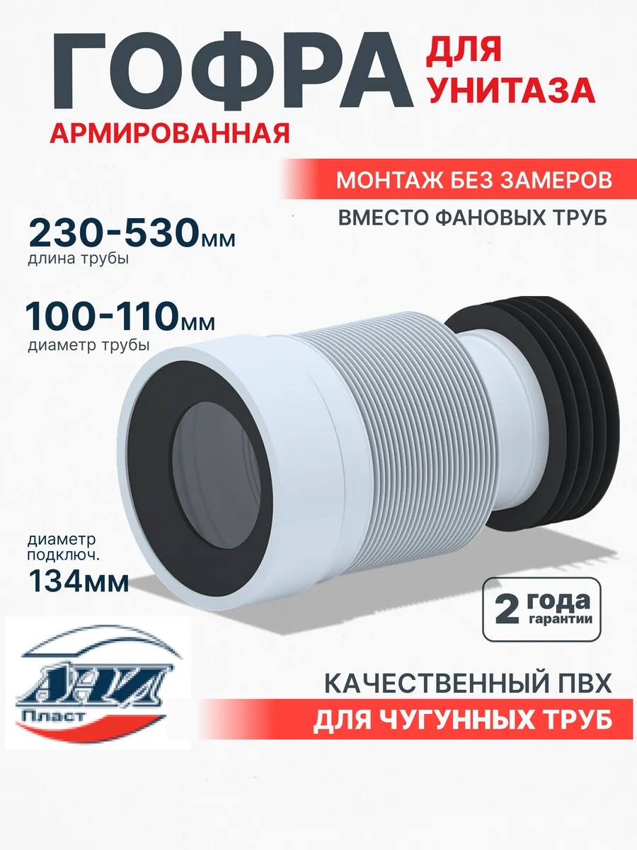 Гофра для унитаза универсальная 110мм х 230-530мм удлинитель. Олимп