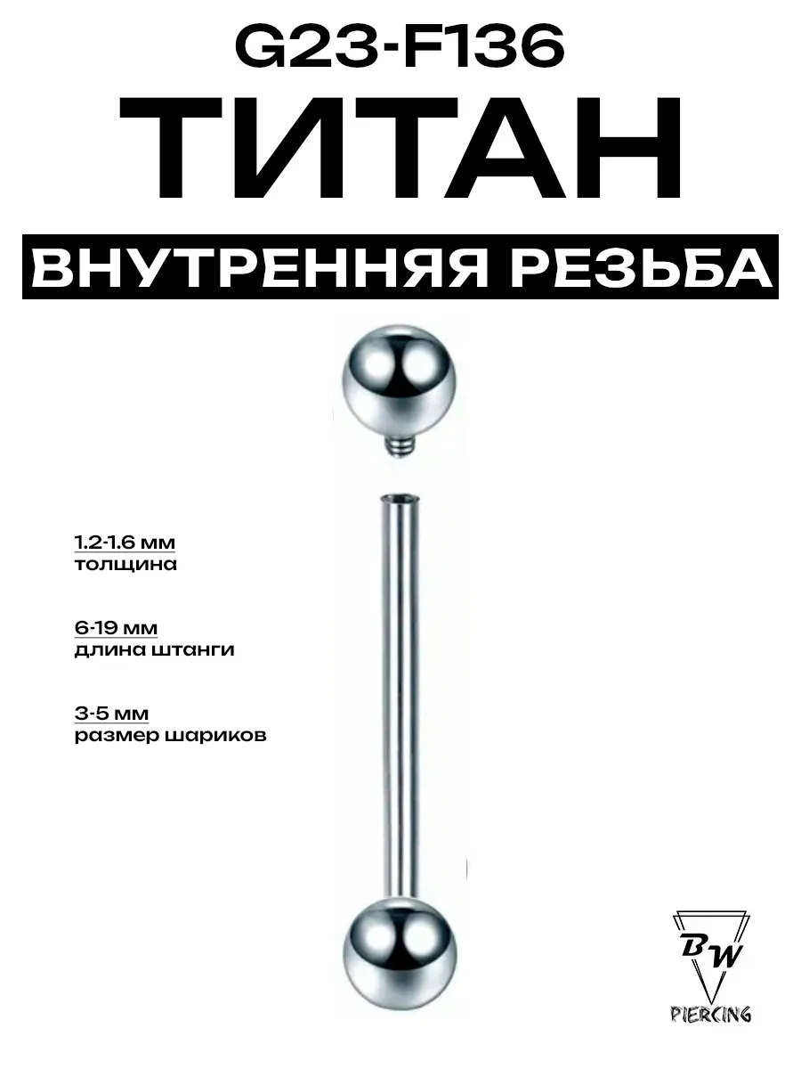 Пирсинг Штанга внутренняя резьба d-1.6мм титан G23 — F136. Billy Willy