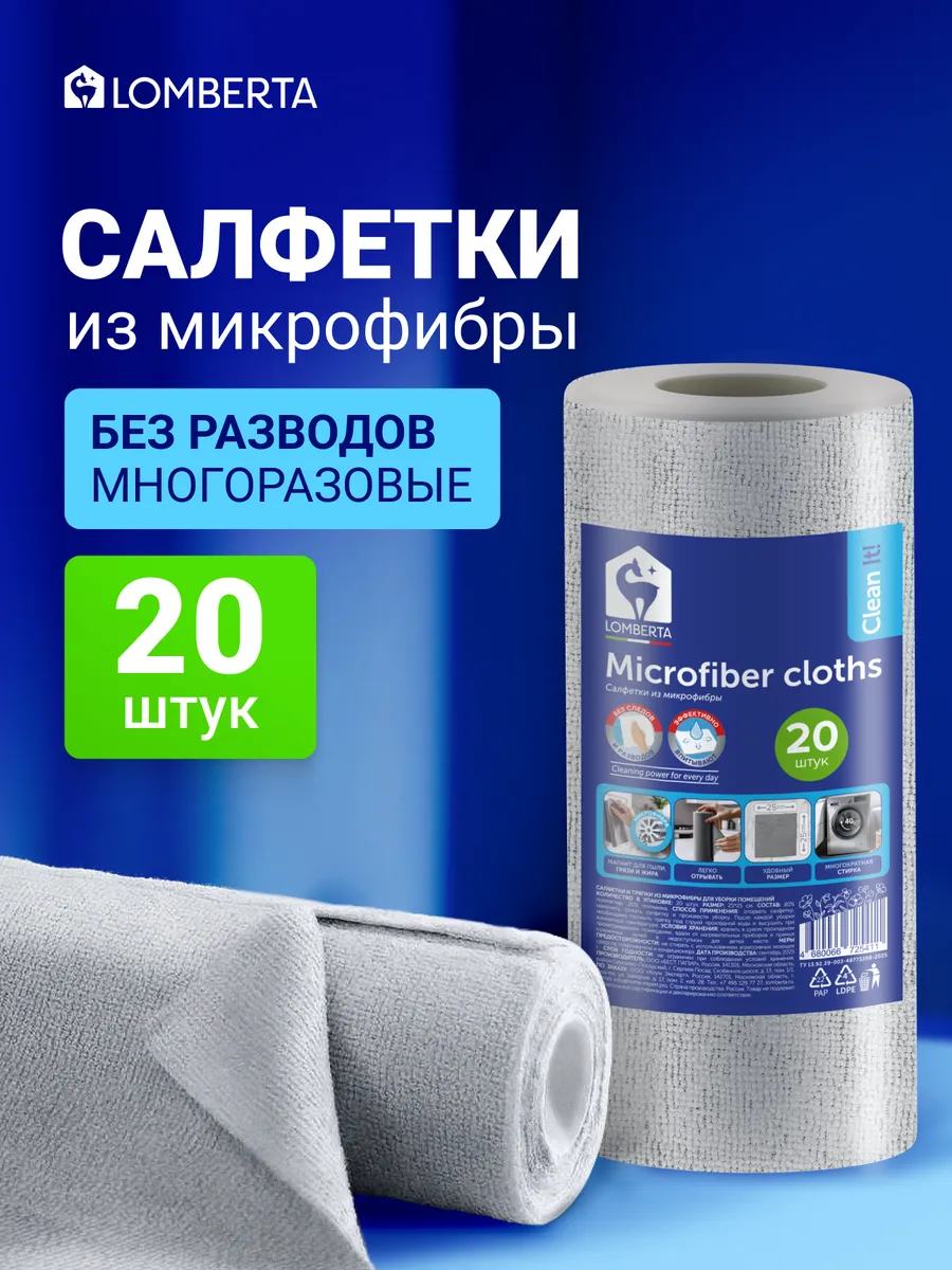 Салфетки из микрофибры светло-серые в рулоне 20 шт. Lomberta