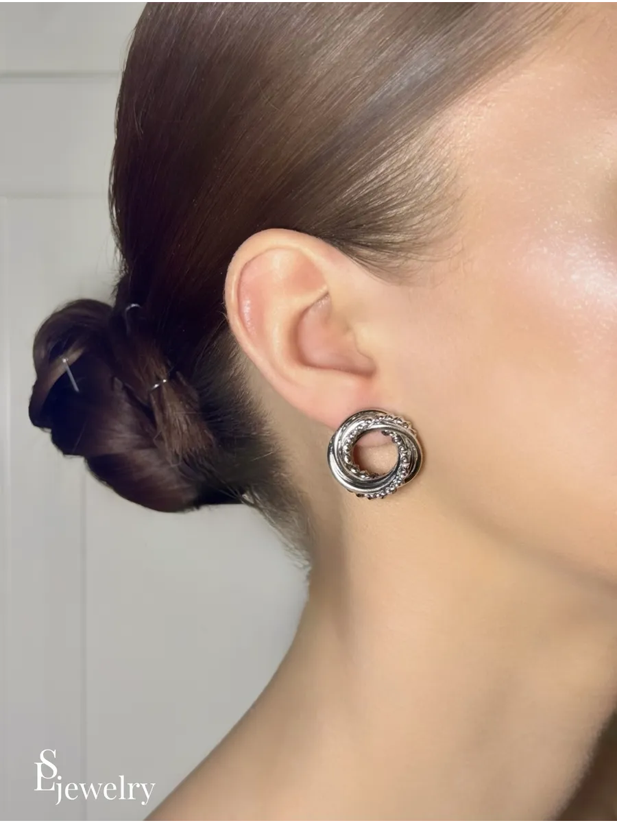 Серьги круглые с плетеным узором сталь. SL