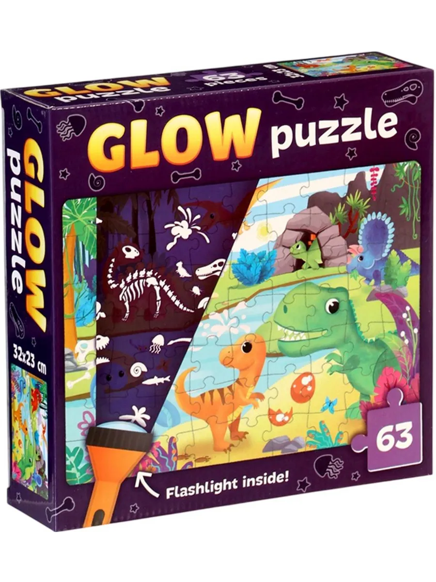 Пазл светящийся в темноте «Динозавры» с фонариком 63 дет. KoroBoom Shop