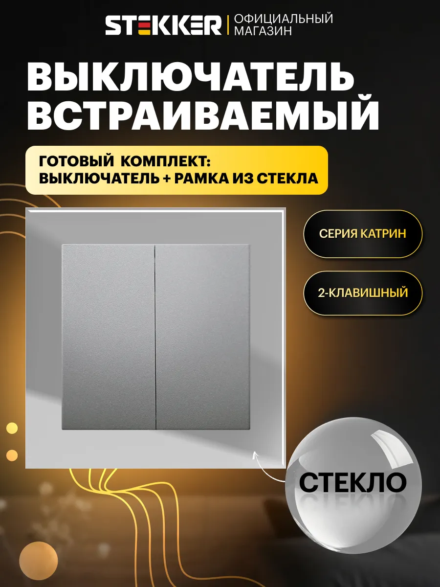 Выключатель двухклавишный внутренний с рамкой. Feron, официальный магазин