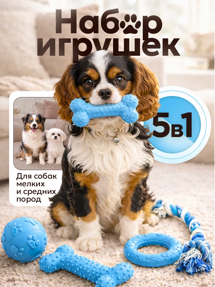 Идеальный набор для владельцев собак, содержащий 5 различных игрушек для разнообразия и стимуляции умственных способностей вашего питомца. Набор включает в себя разные размеры и формы, что позволяет собаке выбирать свою любимую игрушку. Это отличный способ обеспечить вашему питомцу постоянное удовольствие и предотвратить монотонность. Подойдет для собак всех возрастных групп и пород.