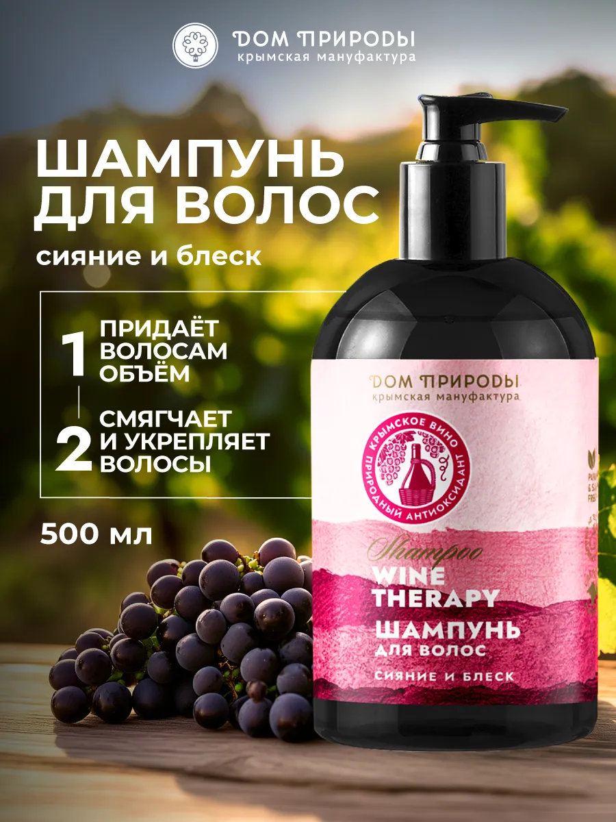 Смягчьте и укрепите свои волосы с помощью бессульфатного шампуня от ДОМ ПРИРОДЫ. Этот винный шампунь поможет восстановить естественную структуру волос, сделав их сильными и блестящими. Пользоваться можно регулярно, даже для чувствительных волос.