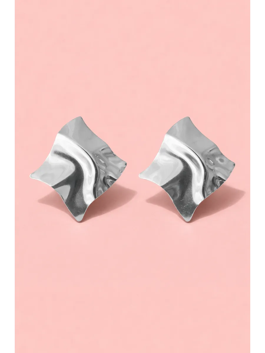 Серьги крупные квадратные пластины мятый металл. Summer