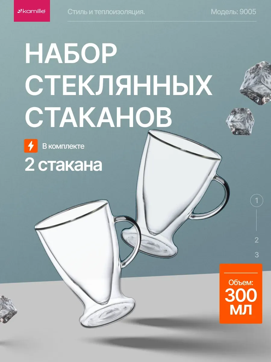 Набор стеклянных кружек 2 шт 300 мл с двойными стенками. Original Store