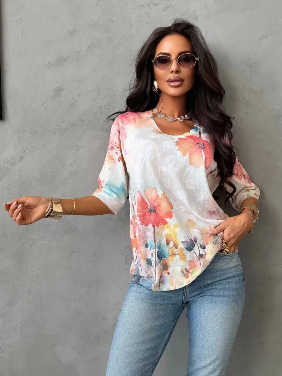 Нарядная кофта больших размеров с интересным принтом — идеальный выбор для каждой женщины! Кофта из мягкой и удобной ткани, удобно сидит на теле, а принт — отличный способ дополнить любой образ. Принимает размеры S-3XL, чтобы подойти к любой женщине. Идеально подходит для повседневной носки или как аксессуар для вечернего наряда.