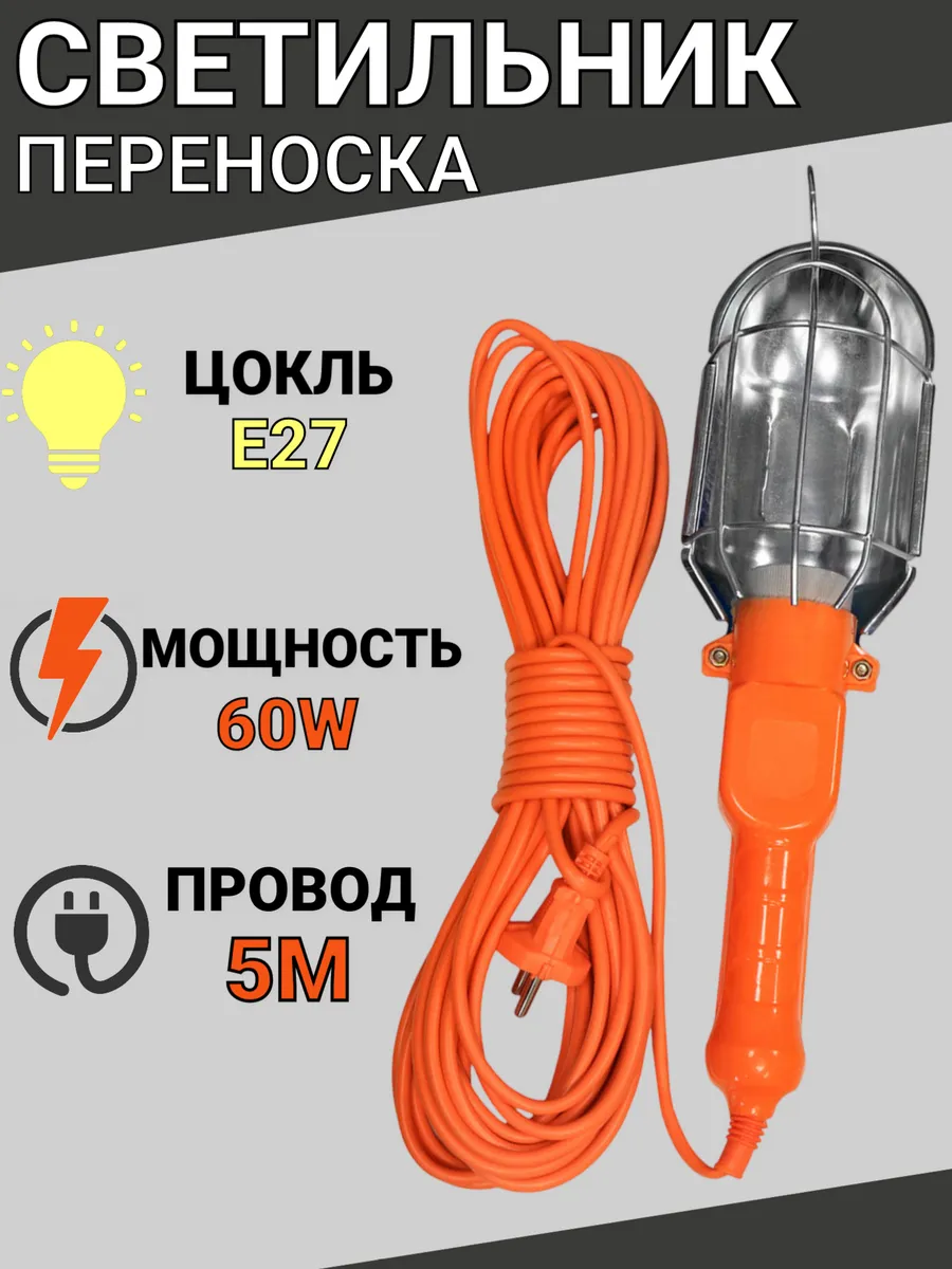 Светильник переноска под лампу Е27 5 метров 60W. HiToolTech store