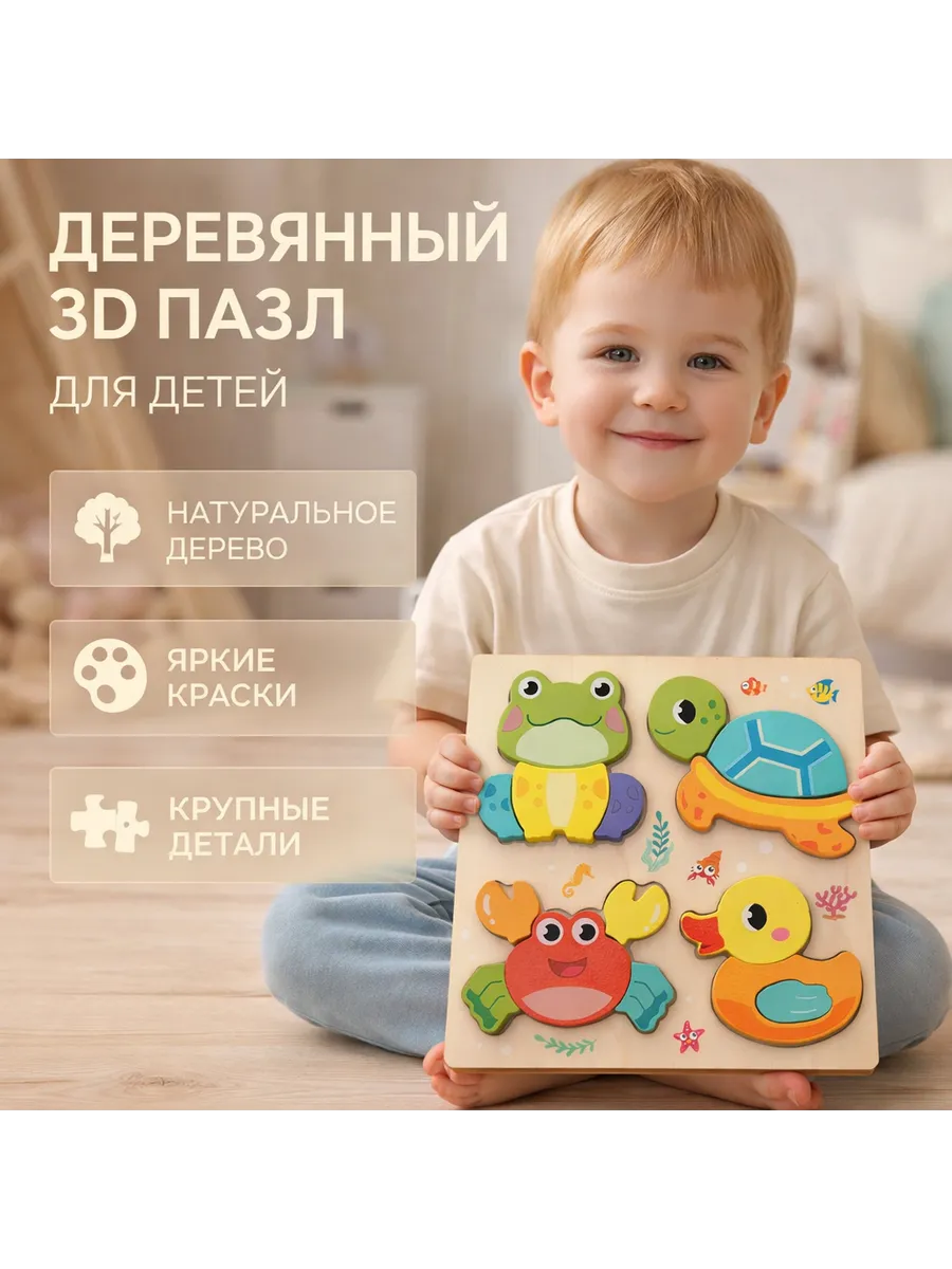 🔥 По акции «Рубли за отзыв» вы сможете вернуть 200 рублей на баланс Wildberries, если оставите отзыв о товаре «Развивающий деревянный 3Д пазл для детей. Игрушкариум».