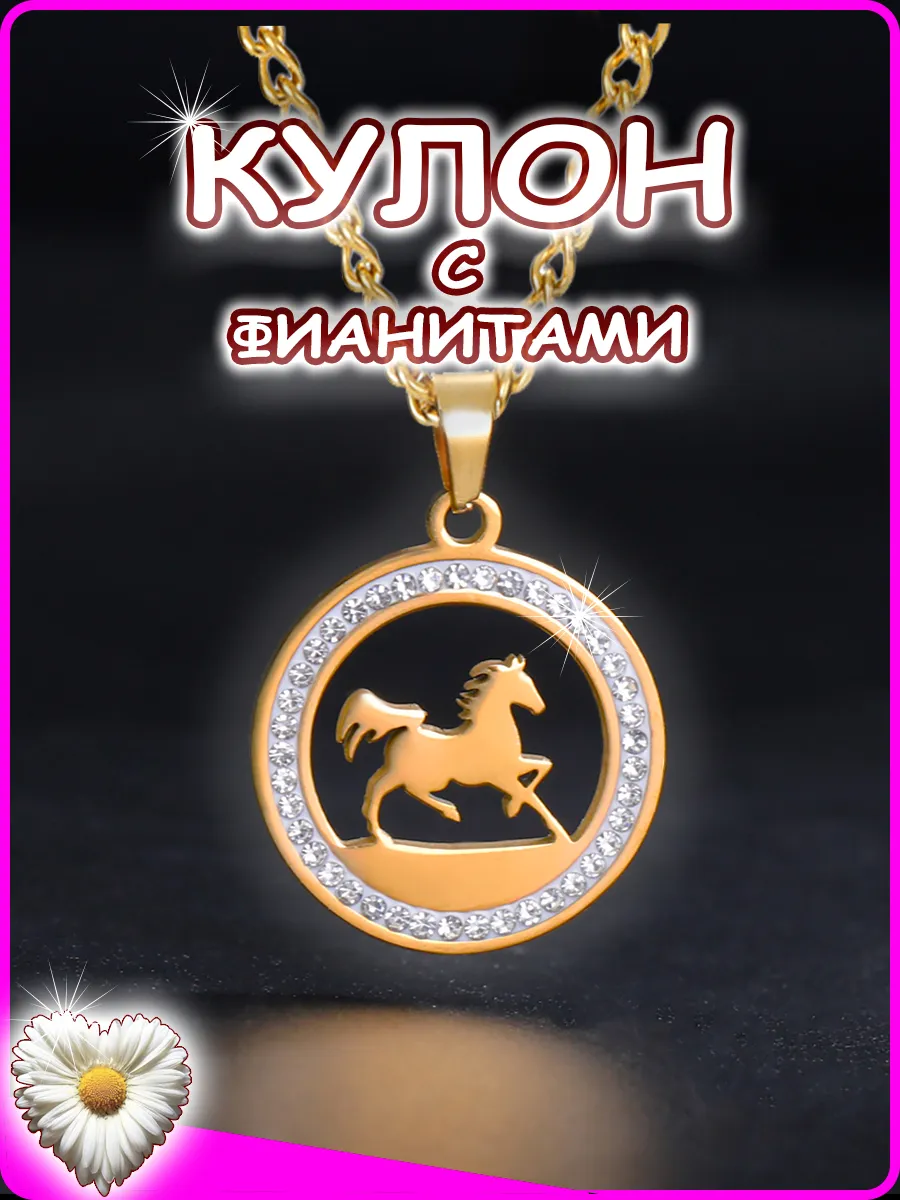 Кулон лошадь с фианитами подвеска с цепочкой. ИП Антошин И.В.