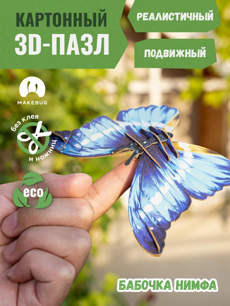 Картонный 3д пазл конструктор Бабочка Нимфа. Абумба, с заботой о малышах