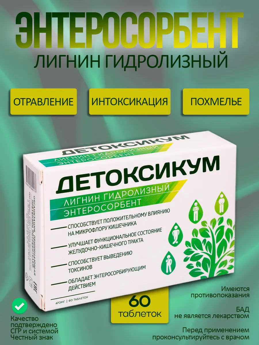 Лигнин гидролизный, сорбент 60 таблеток. Физтех