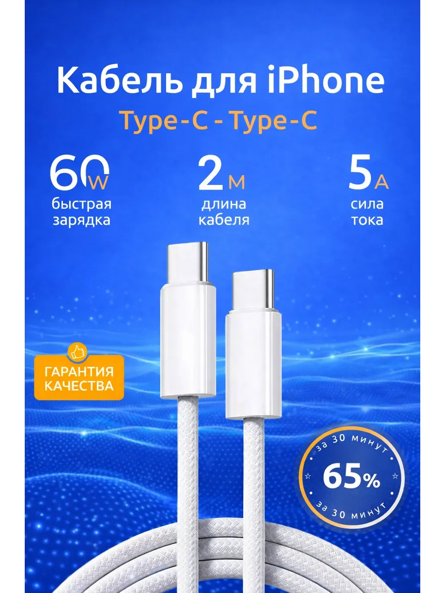 Кабель type-c type-c с двух сторон 2 метра. Гарантия