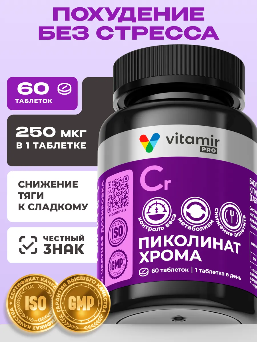 БАД Пиколинат Хрома таблетки для похудения 60 таб. Витамины и минералы VITAMIR x TETRALAB