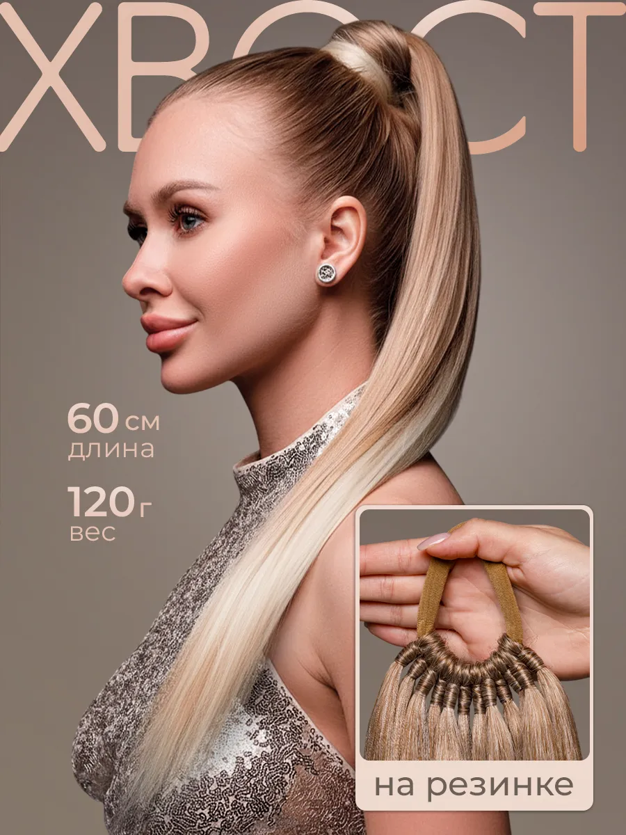 Хвост на резинке накладной шиньон для волос. КаМеЛаВи