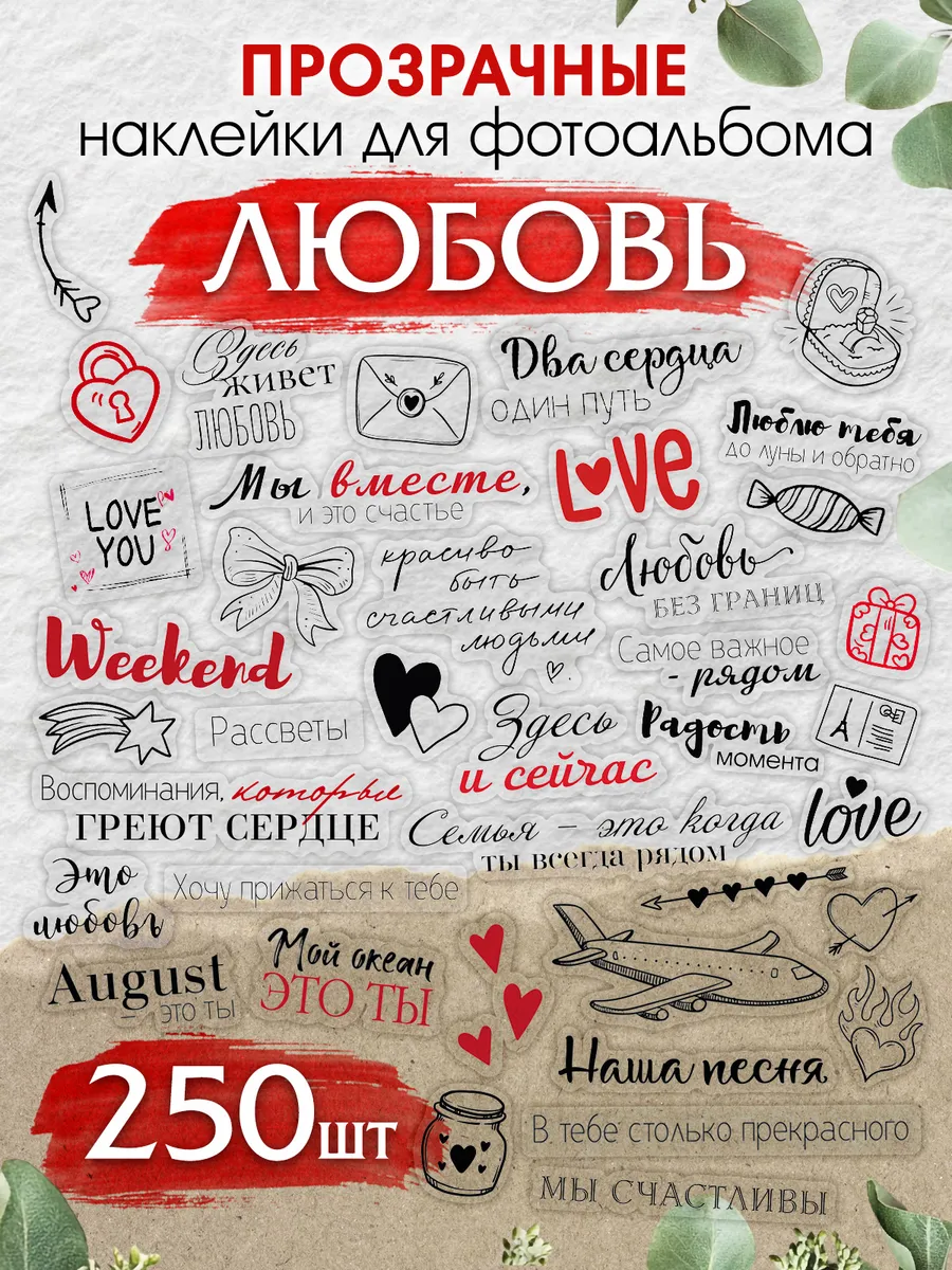 Наклейки для фотоальбома прозрачные Любовь. С-ПРИНТ