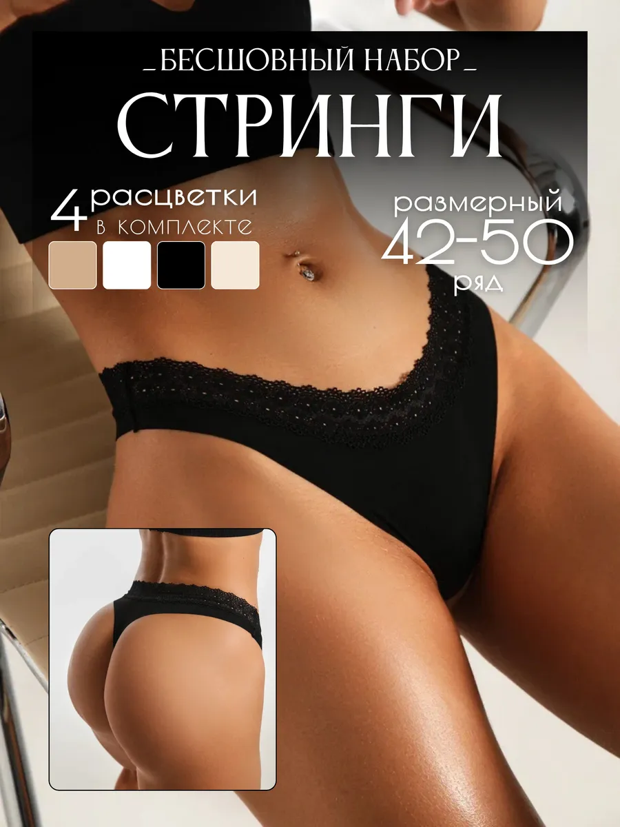 🔥 По акции «Рубли за отзыв» вы сможете вернуть 330 рублей на баланс Wildberries, если оставите отзыв о товаре «Трусы стринги бесшовные с кружевной резинкой набор 4 шт. She waiting at home».