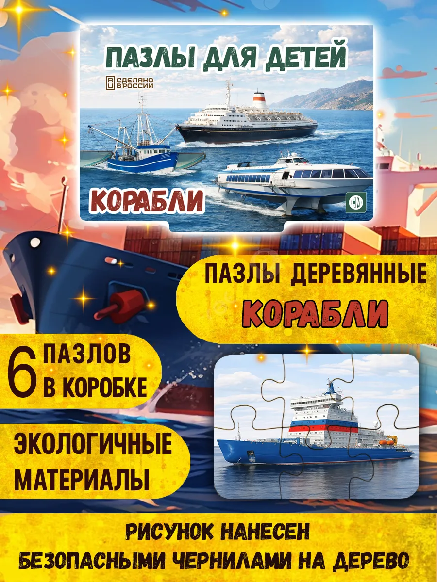 🔥 По акции «Рубли за отзыв» вы сможете вернуть 200 рублей на баланс Wildberries, если оставите отзыв о товаре «Пазлы детские деревянные развивающие Корабли. Rayskiy».