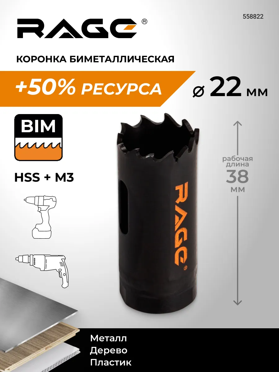 Коронка по металлу биметаллическая 22 мм. RAGE tools