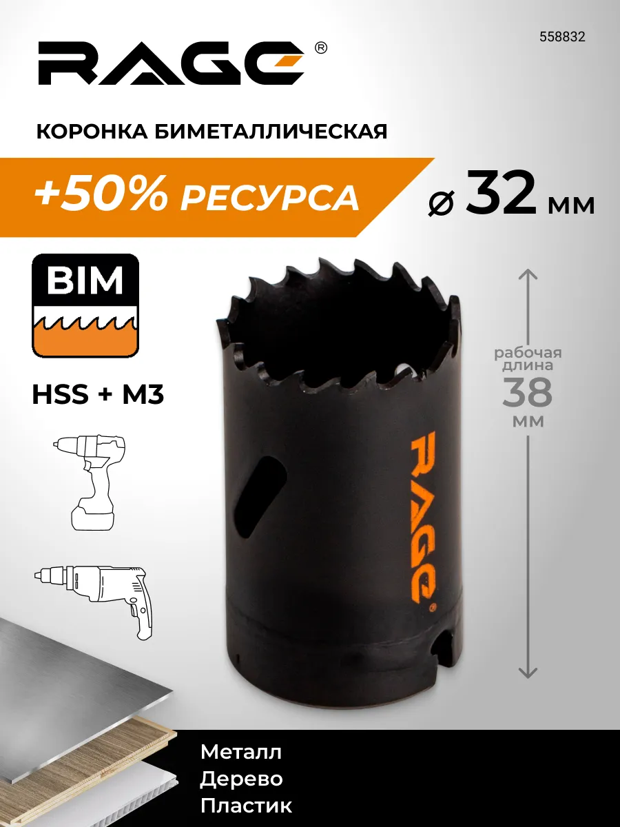 Коронка по металлу биметаллическая 32 мм. RAGE tools