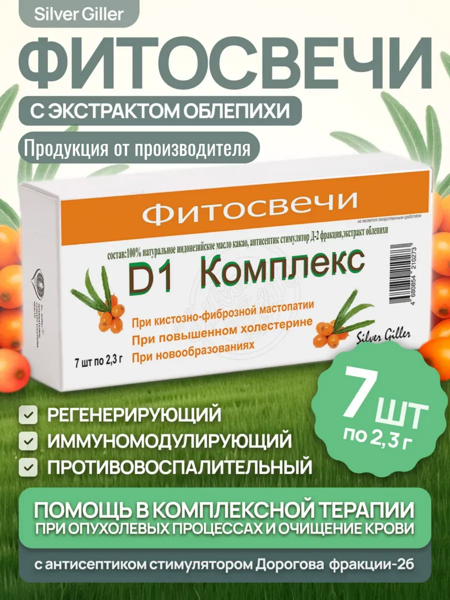 Свечи с Антисептиком Стимулятора Д-2 фракцией и облепихой. Silver Hiller